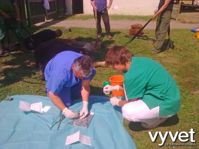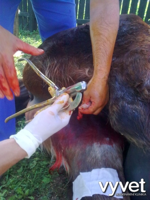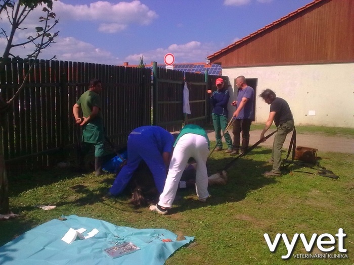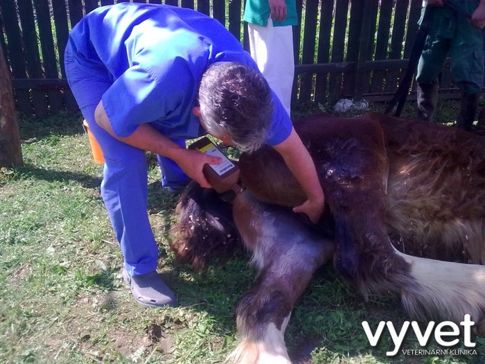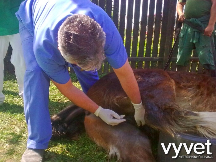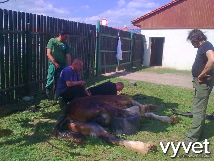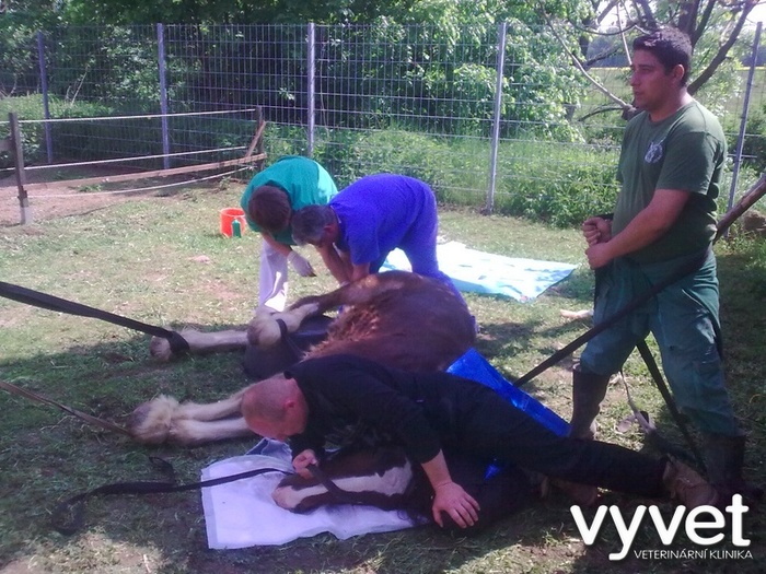Toto krásné plemeno patří k největším na světě. Jde o plemeno určené k práci a ovladatelnost a bezpečnost u hřebců je do značné míry ovlivnitelná kastrací. Proto jsme na žádost vedení zoo provedli tento tradiční veterinární zákrok. Kastraci jsme provedli jak je patrné z fotografií vleže,bez fixace pomocí pout a to metodou s odkrytým provazcem semenným. Operace proběhla bez komplikací a rána se dobře zahojila.
