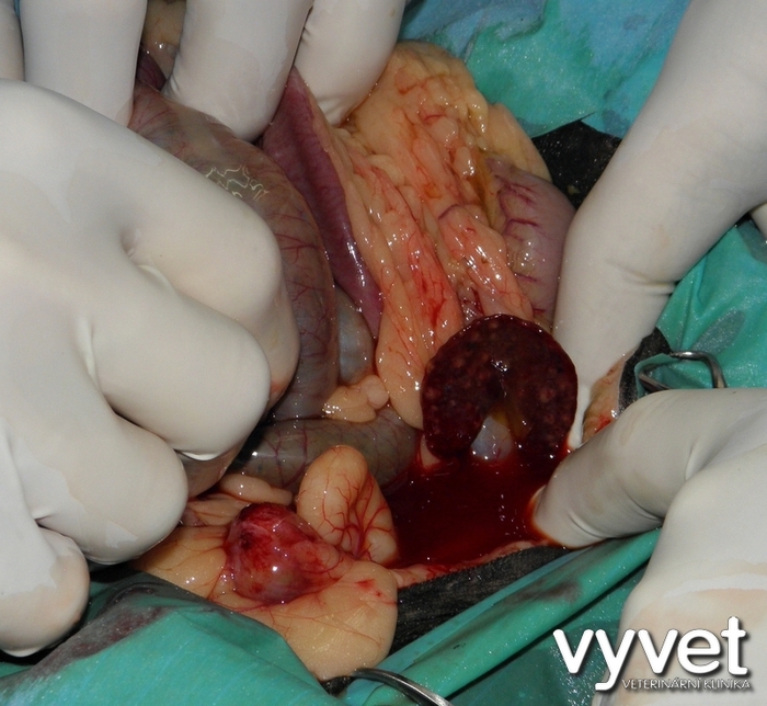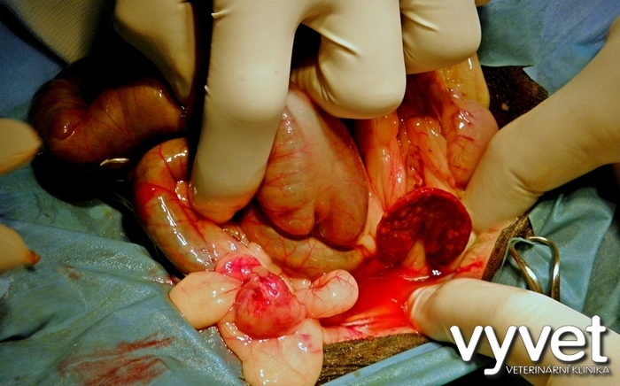 V praxi malých zvířat se nesetkávám často s takovým nálezem. Pokud je u psa, nebo kočky infekce v dutině břišní, jde většinou o difuzní proces zachvacující celou dutinu břišní, jde o tzv. peritonitidu. Je možné, že opice, či poloopice mají schopnost infekci lokalizovat podobně jako náš lemur.