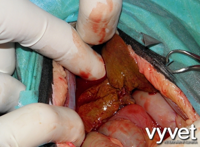 Po otevření břišní dutiny bylo jasné, že převládají zánětlivé změny mající sklon k abscedaci jak na játrech, tak na slezině. Omezili jsme se na odběr vzorků, provedli jsme celkovou revizi dutiny břišní a tu jsme standardně uzavřeli. Lemur po operaci dál nepřijímal potravu a musel dostávat infuze. Po třech dnech od operace jsme se po dohodě s vedením zoo dohodli o eutanazii. Histologie nakonec neprokázala nádorový proces jak jsme se původně domnívali, ale rozsáhlý zánětlivý proces v jaterní tkáni a tkáni sleziny, který vyústil ve vznik četných abscesů v obou orgánech.