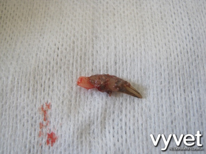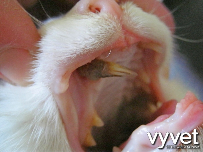 Odborný text: I u koček stejně jako u psů a jiných savců, včetně člověka se tvoří zubní kámen, který má infekční pozadí. Zubní kámen způsobuje nejen nepříjemný zápach, ale je zdrojem infekce pro celé tělo. Zuby se postupně uvolňují, některé vypadnou sami a některé je třeba vytrhnout. Zvířeti se zpravidla uleví od bolesti a začne znovu přijímat potravu.