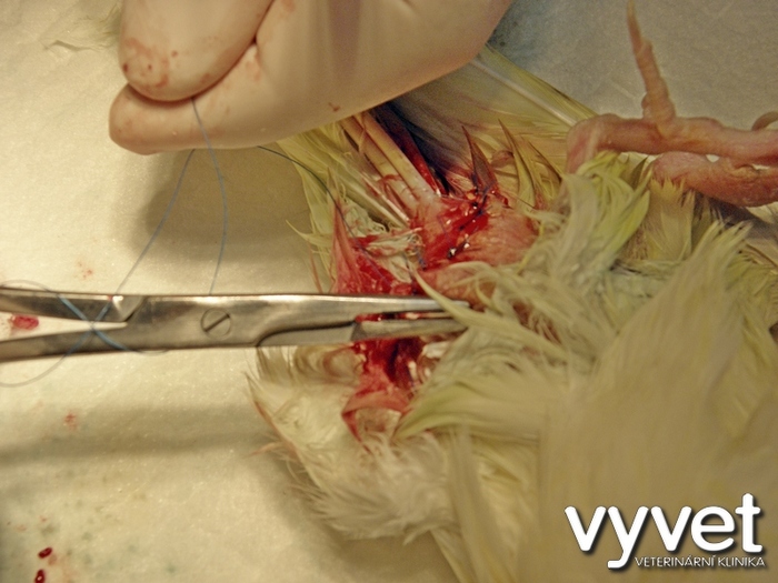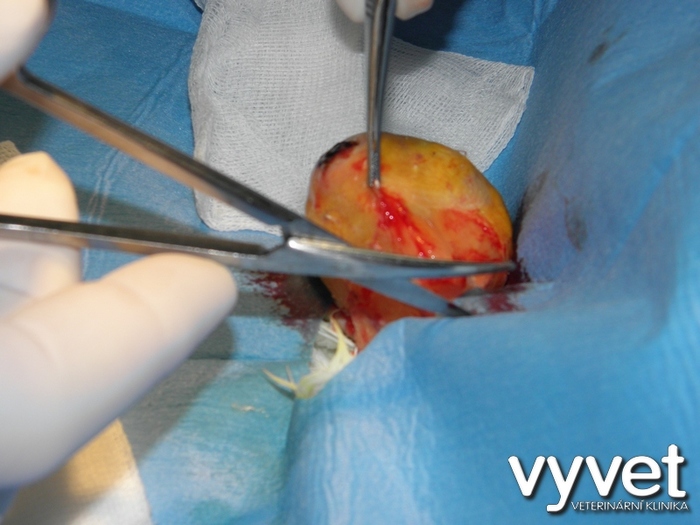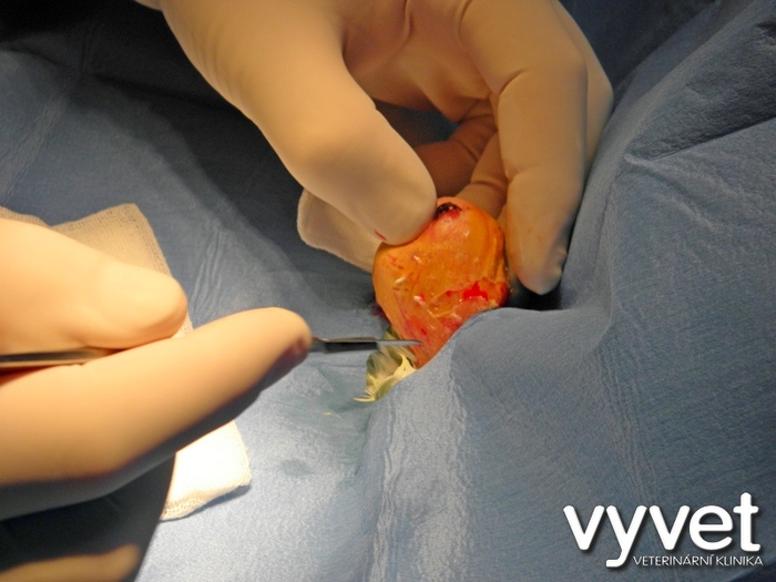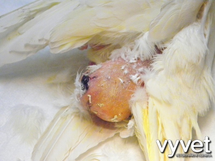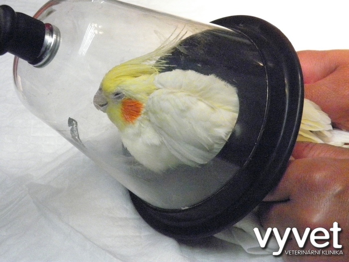 Operace desetileté korely (samičky), které narostl v těsné blízkosi kloaky novotvar o velikosti vlašského ořechu. Zákrok byl proveden v celkové inhalační anestezii (v Isofluranu). Výhodou této anestezie je její bezpečnost. Pták, ješter nebo drobný hlodavec, se budí po přerušení inhalace během několika vteřin. V tomto případě jsme odoperovali cystu. I tato samička korely se může dožít nadprůměrného věku (korely se průměrně dožívají deseti let, ale jsou i dvacetiletí ptáci).