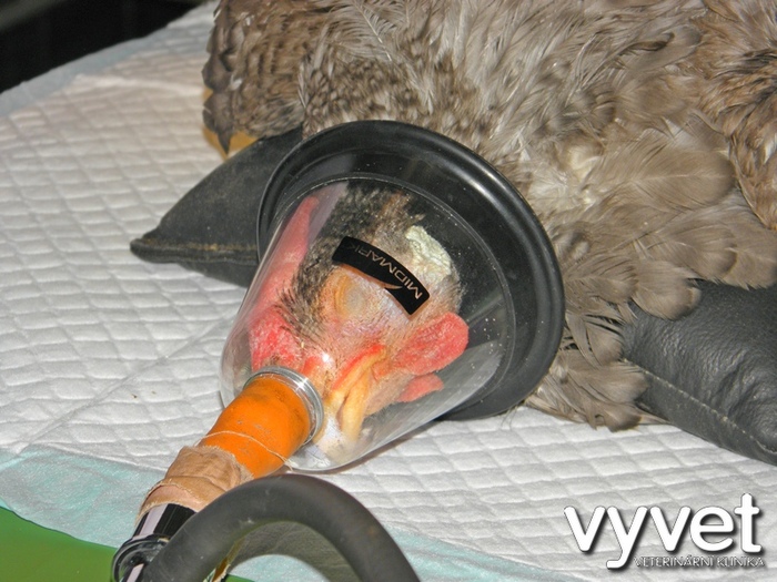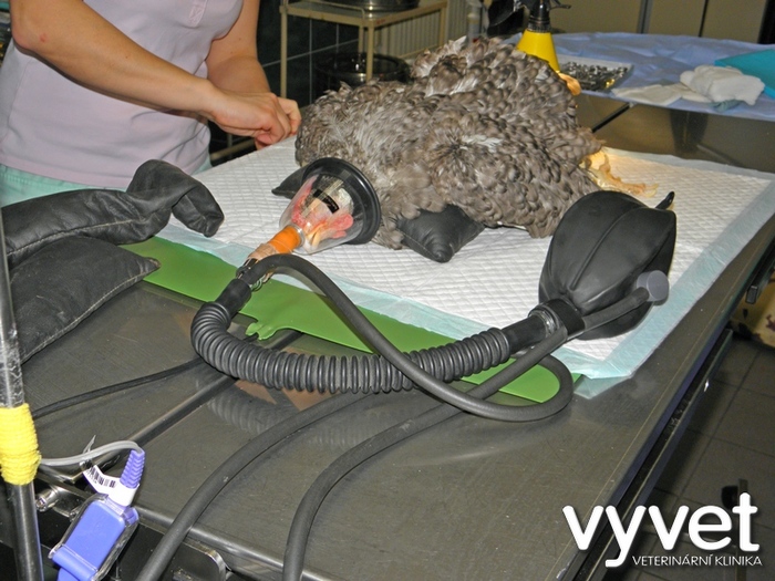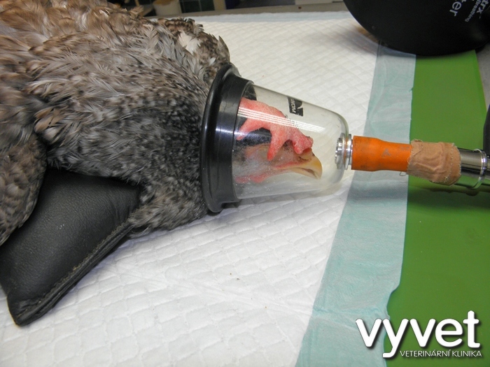 Bezpečnou anestezii ptáků umožňuje inhalační přístroj opatřený maskou.