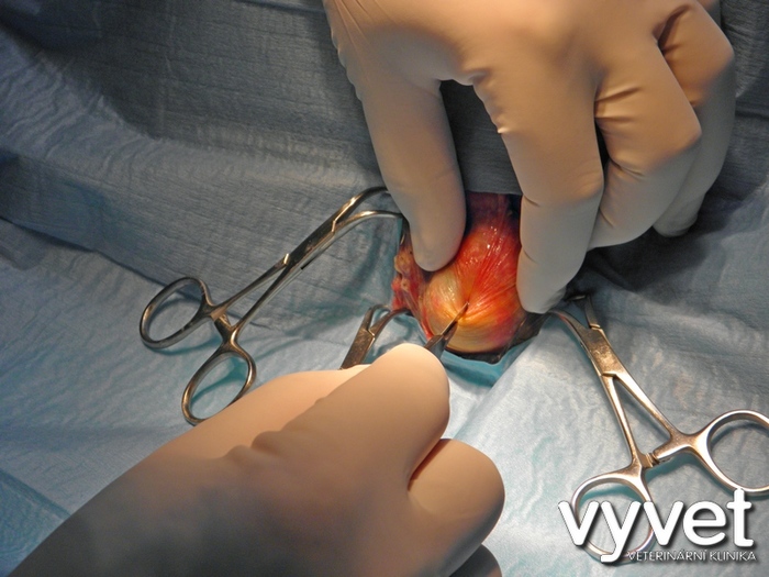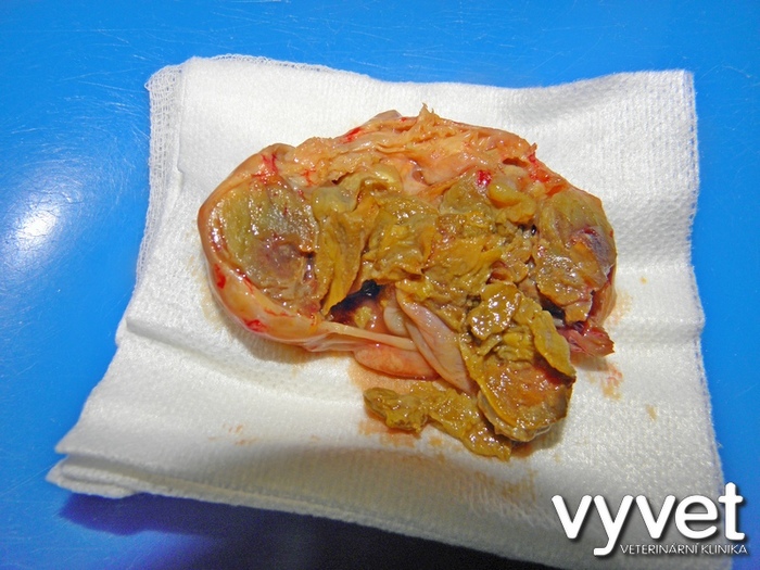 Vybavený degenerovaný vaječník s částí vejcovodu.