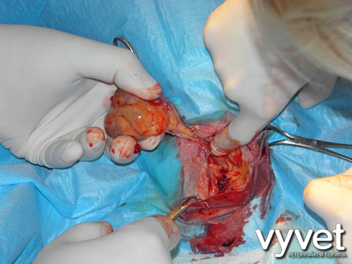 Velmi obtížná revize vzhledem k rozpadu změněné tkáně vaječníku.